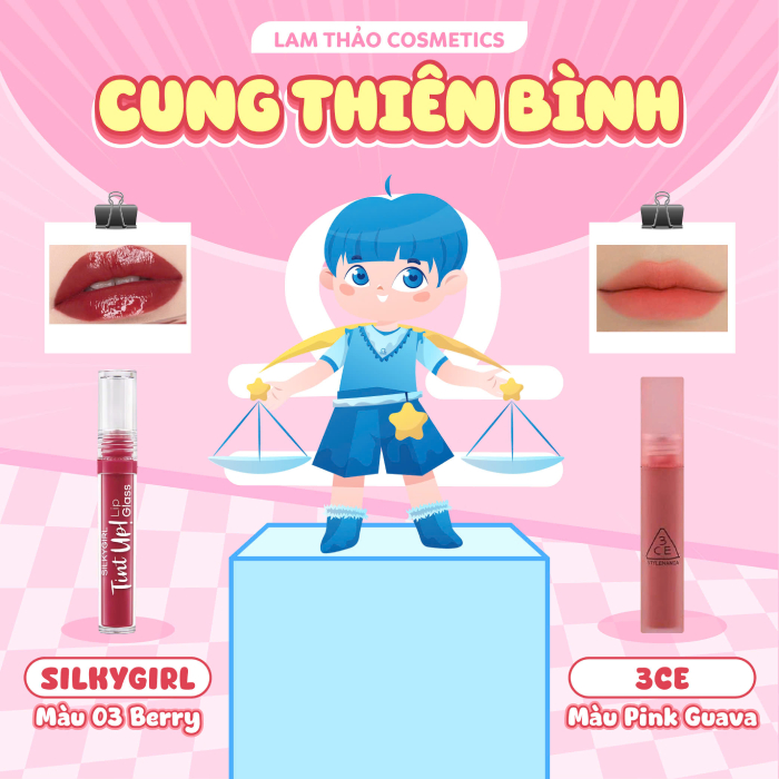 Thiên Bình - cung hoàng đạo của sự cân bằng và hòa hợp. Màu son đỏ hồng nữ tính sẽ là sự lựa chọn hoàn hảo, giúp bạn thể hiện vẻ đẹp thanh lịch và quyến rũ. Đây là màu son lý tưởng cho những ai yêu thích sự duyên dáng nhưng vẫn mạnh mẽ và cuốn hút.