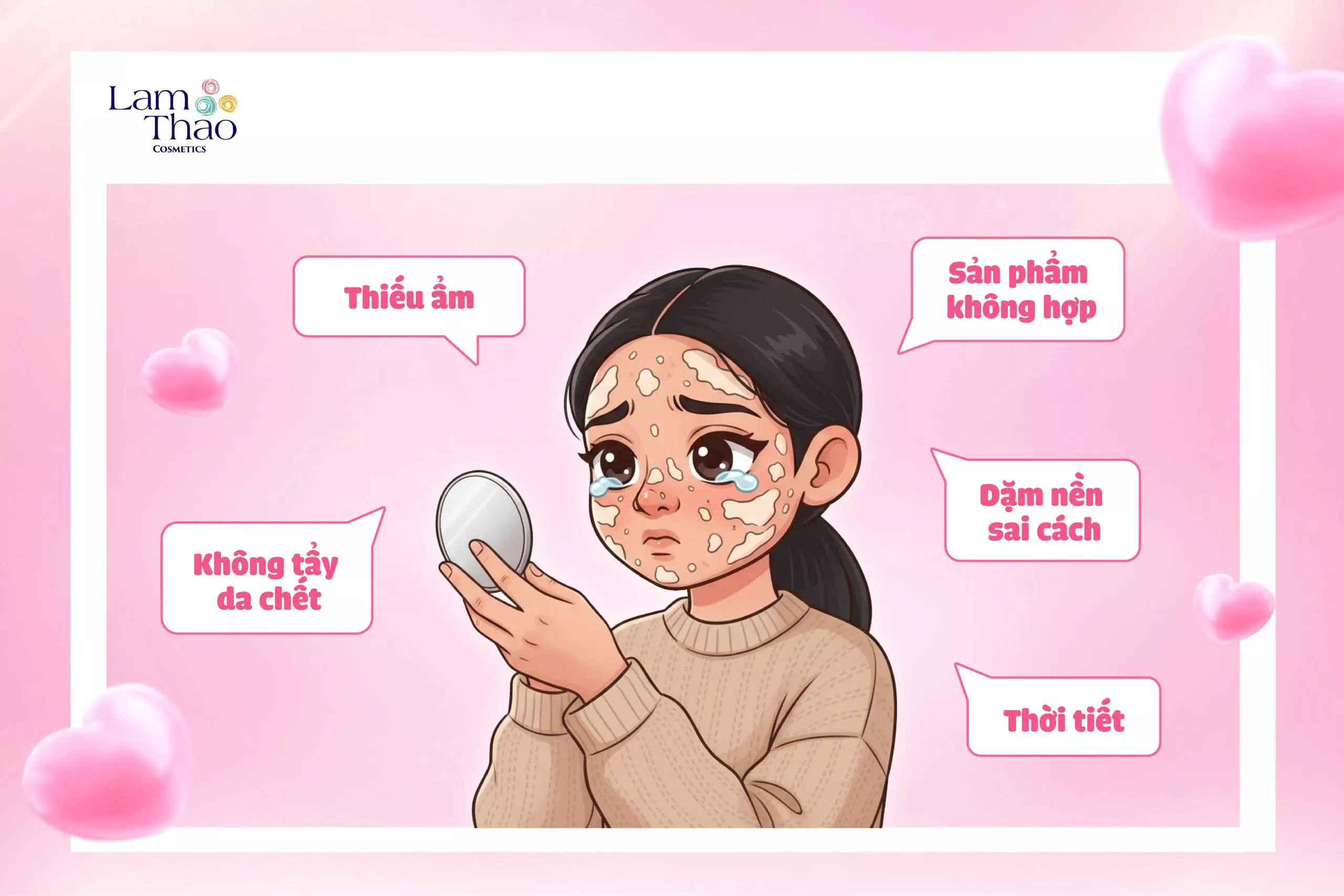 Khi trời hanh khô hay thời tiết sắp vào đông, lớp nền dễ khô và bong tróc dù bạn đã cấp ẩm đầy đủ. Những nàng da khô chắc chắn sẽ hiểu cảm giác “khóc thầm” khi lớp nền không chịu hợp tác!