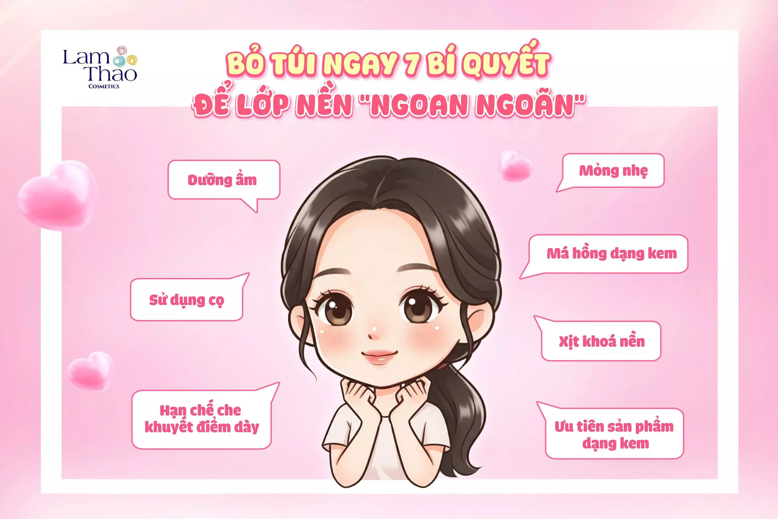 Một lớp nền mịn màng và bền lâu luôn là bí quyết vàng giúp các nàng tự tin rạng rỡ suốt cả ngày. Tuy nhiên, nhiều cô nàng vẫn thường gặp phải tình trạng nền bị mốc, vón cục hoặc nhanh chóng trôi mất chỉ sau vài giờ. Vậy làm thế nào để đánh nền không bị mốc, đặc biệt là với làn da khô? Hãy cùng Lam Thảo Cosmetics khám phá 7 cách đánh nền không bị mốc trong bài viết dưới đây, để mỗi lần trang điểm đều trở nên hoàn hảo như ý!