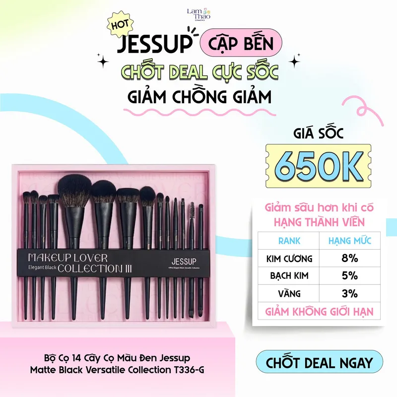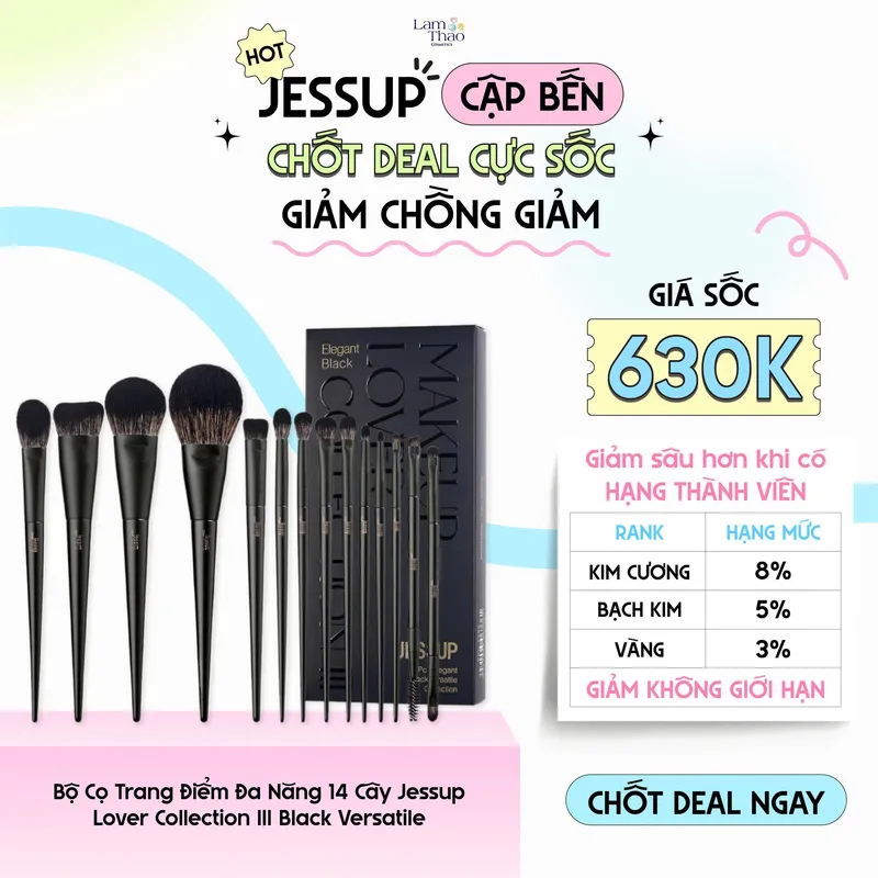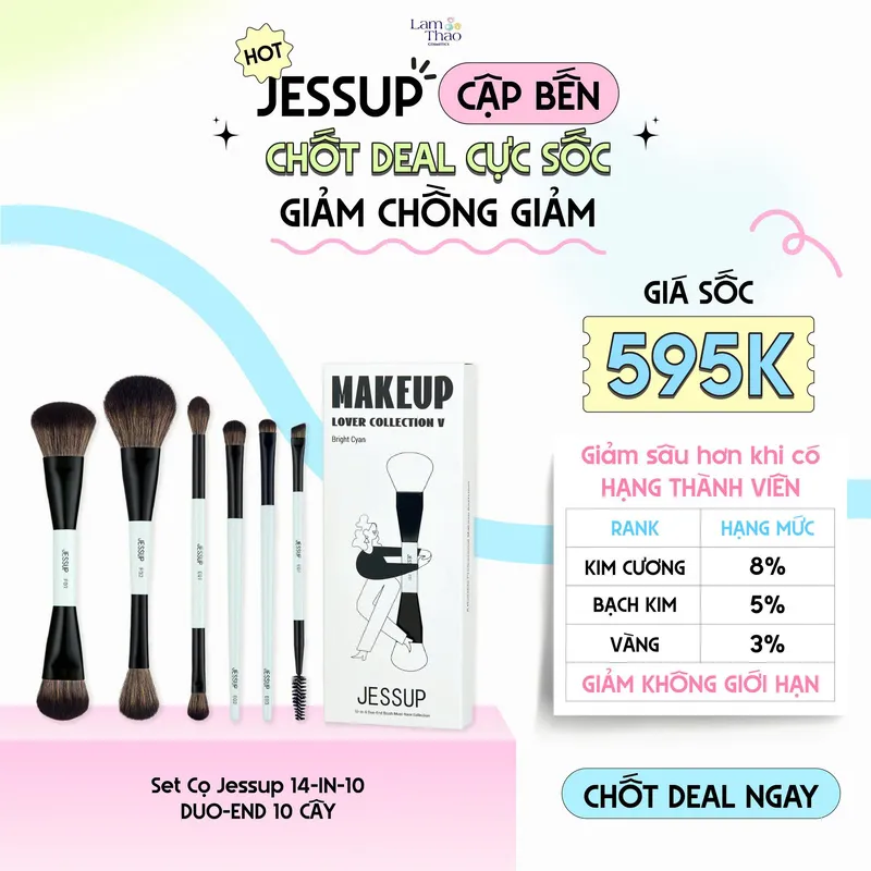 Có thể thấy, Jessup luôn biết cách chiều lòng tín đồ làm đẹp với những bộ cọ vừa đẹp mắt, bền bỉ vừa dễ sử dụng cho nhiều phong cách trang điểm khác nhau. Dù bạn tìm kiếm một set nhỏ gọn cho makeup hằng ngày hay bộ sưu tập chuyên nghiệp để thỏa sức sáng tạo, Jessup đều có thể đáp ứng trọn vẹn. Đừng quên tham khảo thêm nhiều bộ cọ trang điểm chính hãng tại Lam Thảo Cosmetics để chọn set ưng ý nhất cho mình ngay hôm nay nhé!