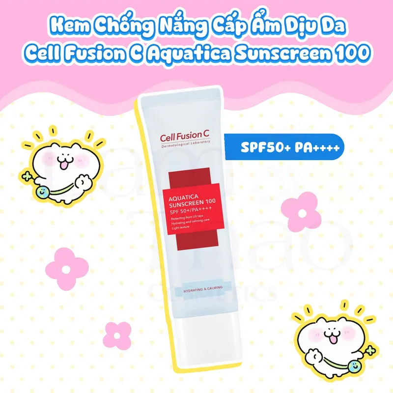 Kem Chống Nắng Cấp Ẩm Dịu Da Cell Fusion C Aquatica Sunscreen 100 SPF50+ PA++++ là lựa chọn lý tưởng trong danh sách kem chống nắng cho da khô. Sản phẩm được thiết kế dành riêng cho làn da thiên khô, da hỗn hợp thiên khô, da nhạy cảm và cả những trường hợp da vừa trải qua liệu trình laser thẩm mỹ. Với công thức giàu dưỡng chất, sản phẩm mang đến khả năng bổ sung độ ẩm dồi dào, giúp bề mặt da mềm mại, căng mịn tức thì.