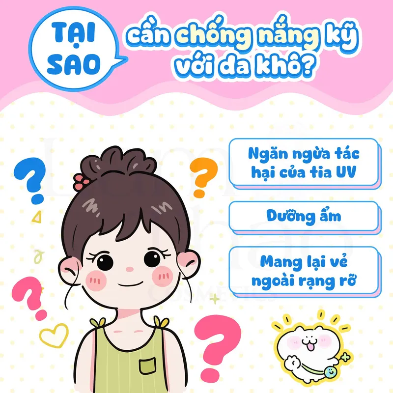 Nhờ những tác động tích cực này, lựa chọn kem chống nắng cho da khô không chỉ giúp bảo vệ da khỏi ánh nắng mà còn hỗ trợ cải thiện bề mặt da, giữ cho da luôn mềm mại, ẩm mượt và khỏe khoắn.