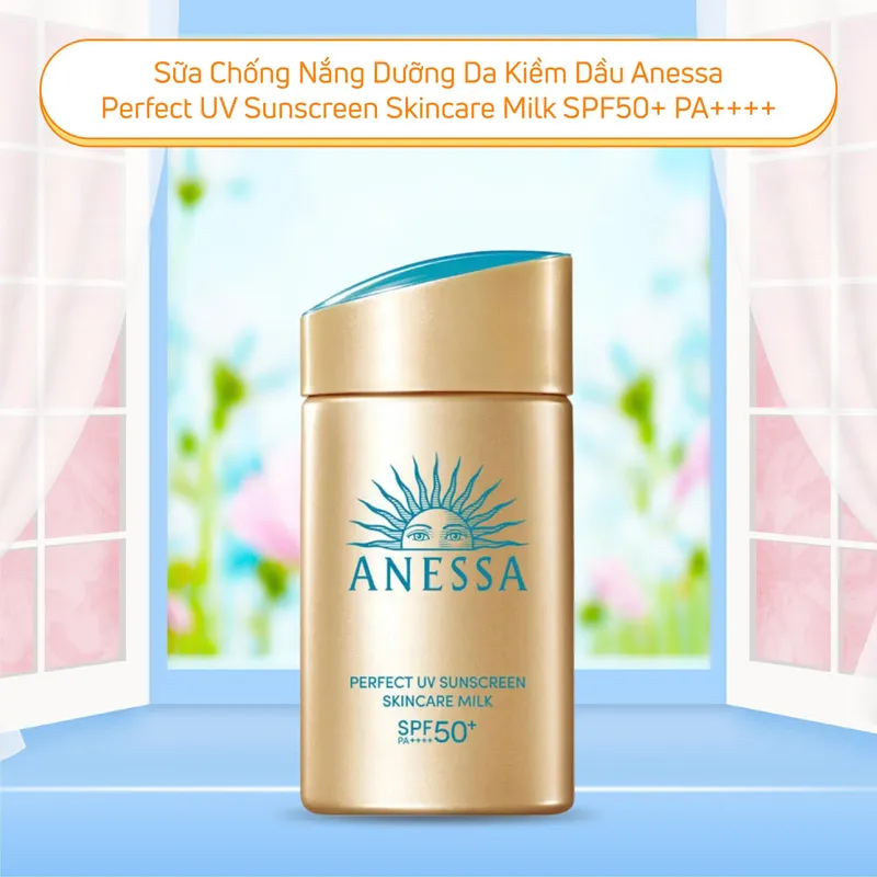 Sữa Chống Nắng Dưỡng Da Kiềm Dầu Anessa Perfect UV Sunscreen Skincare Milk SPF50+ PA++++ là gợi ý hoàn hảo cho làn da dầu hoặc hỗn hợp cần lớp bảo vệ mạnh mẽ mà vẫn hạn chế bóng nhờn. Nhờ ứng dụng công nghệ Aqua Booster EX kết hợp hệ thống bộ lọc vật lý - hóa học, sản phẩm giúp kiểm soát lượng dầu thừa, giữ bề mặt da luôn mịn và khô thoáng. Kết cấu dạng sữa siêu mỏng nhẹ, thấm nhanh, không để lại cảm giác dính rít, rất thích hợp dùng mỗi ngày cũng như làm lớp lót trước khi trang điểm.