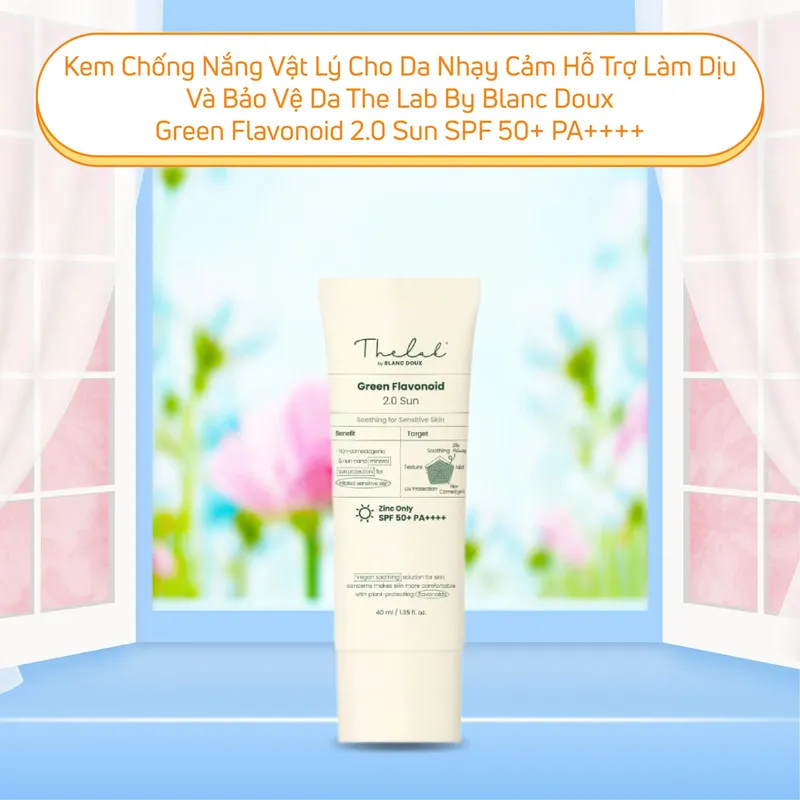 Kem Chống Nắng Vật Lý Cho Da Nhạy Cảm Hỗ Trợ Làm Dịu Và Bảo Vệ Da The Lab By Blanc Doux Green Flavonoid 2.0 Sun SPF 50+ PA++++ là lựa chọn lý tưởng dành cho làn da nhạy cảm. Sản phẩm sở hữu công thức êm dịu nhưng vẫn mang đến khả năng bảo vệ vượt trội, giúp làn da bạn luôn an toàn trước tác động của tia UV. Không chỉ vậy, kết cấu nhẹ nhàng còn mang lại cảm giác thoải mái và mềm mại, duy trì sự dễ chịu cho da suốt cả ngày dài.
