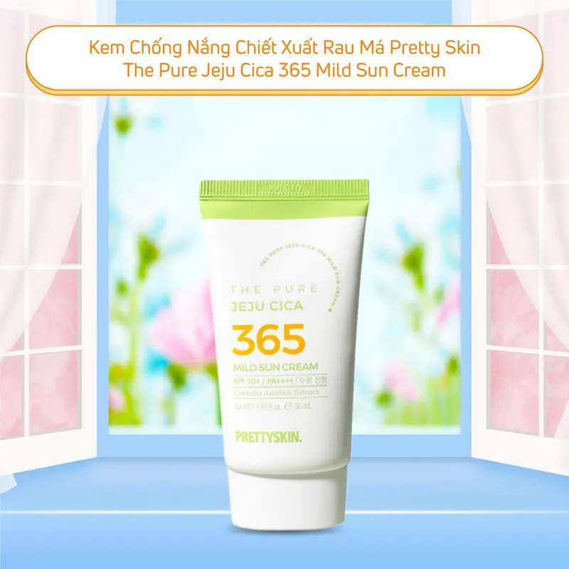 Trong danh sách những loại kem chống nắng cho da nhạy cảm hiện nay, Kem Chống Nắng Chiết Xuất Rau Má Pretty Skin The Pure Jeju Cica 365 Mild Sun Cream nổi bật nhờ công thức chiết xuất thiên nhiên. Sản phẩm chứa rau má Centella và tảo Ecklonia cava, giúp tạo lớp màng chắn bảo vệ da trước tia UV, đồng thời mang đến cảm giác dịu nhẹ, hỗ trợ phục hồi và cải thiện tình trạng da khô sần.
