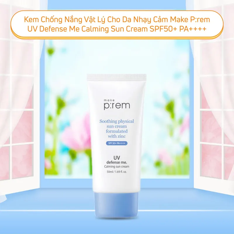 Việc tìm kem chống nắng cho da nhạy cảm luôn khiến nhiều người bối rối, nhưng Kem Chống Nắng Vật Lý Cho Da Nhạy Cảm Make P:rem UV Defense Me Calming Sun Cream SPF50+ PA++++ chính là lựa chọn lý tưởng bởi công thức nhẹ nhàng mà vẫn bảo vệ da tối ưu. Sản phẩm với công thức 100% vật lý, kết cấu mỏng nhẹ, êm ái, giúp che chắn làn da trước tia UV mà không gây bít tắc hay khó chịu. Làn da được chống nắng hiệu quả, vẫn duy trì cảm giác khô thoáng suốt cả ngày!