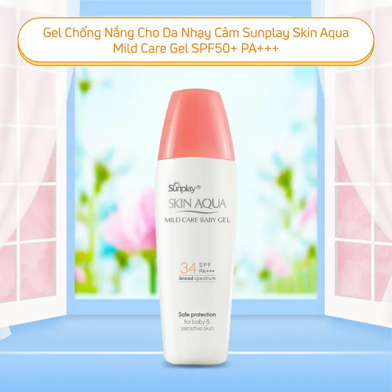 Gel Chống Nắng Cho Da Nhạy Cảm Sunplay Skin Aqua Mild Care Gel SPF50+ PA+++ sở hữu công nghệ Watery Capsule, trong đó các hạt chống nắng được bao bọc bởi lớp màng nước, giúp khuếch tán và phản xạ tia UVA/UVB theo nhiều hướng. Nhờ vậy, sản phẩm mang lại khả năng bảo vệ da vượt trội, hạn chế tình trạng da bị đen sạm, cháy nắng, xuất hiện tàn nhang hay ửng đỏ khi tiếp xúc trực tiếp với ánh nắng mặt trời.