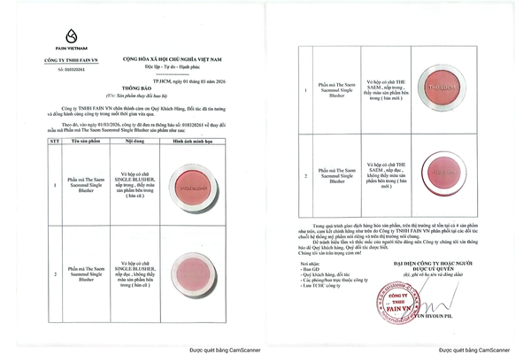 Để giúp các bạn yên tâm mua sắm và tránh nhầm lẫn về các phiên bản bao bì đang lưu hành trên thị trường, Lam Thảo xin cập nhật thông báo thay đổi mẫu mã từ Công ty TNHH FAIN VN (Nhà phân phối chính thức của The Saem tại Việt Nam) cho dòng phấn má "quốc dân" The Saem Saemmul Single Blusher.