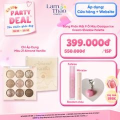 Dasique Ice Cream Shadow Palette phấn mắt 9 ô với thiết kế bắt mắt cùng bảng màu dịu nhẹ đa dạng từ đậm đến nhạt kết hợp những gam màu ấm, trung tính và sắc nhũ, là lựa chọn dành riêng cho những cô nàng yêu thích nét tự nhiên hoặc dịu dàng. Đồng hành tạo điểm nhấn cho nàng thỏa sức là chính mình ở nhiều phiên bản, từ công sở đến những bữa tiệc sôi nổi.