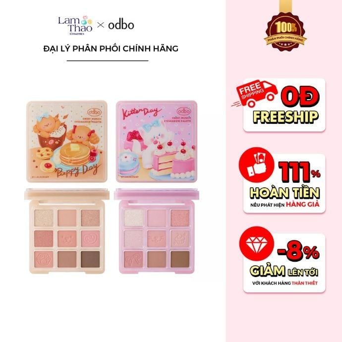 Với thiết kế đáng yêu, bảng màu dễ dùng, Bảng Mắt Odbo Sweet Munch Eyeshadow Palette không chỉ giúp bạn dễ dàng tạo nên những layout makeup trong trẻo mỗi ngày mà còn mang lại cảm giác ngọt ngào trong từng lần trang điểm. Đây sẽ là một lựa chọn nhỏ xinh nhưng đủ để khiến túi đồ makeup của nàng thêm phần “cưng xỉu”. Nếu bạn đang tìm một nơi mua hàng chính hãng, giá tốt và luôn cập nhật những sản phẩm makeup xinh xắn, hãy ghé Lam Thảo Cosmetics nhé. Chúng mình luôn sẵn sàng đồng hành cùng bạn trên hành trình làm đẹp mỗi ngày một cách nhẹ nhàng và thật tự nhiên 🌸