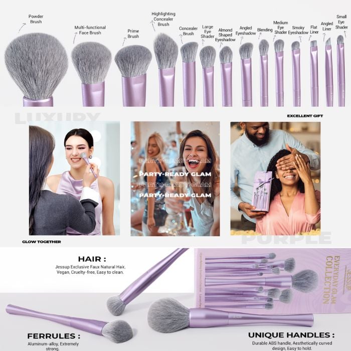 Với Bộ Cọ 14 Cây Jessup Everyday Glam Collection - Luxury Purple Makeup Brush Set, thương hiệu tiếp tục mang đến một trải nghiệm sang trọng, tinh tế nhưng vẫn dễ dùng cho mọi đối tượng – từ người mới tập makeup cho đến beauty blogger chuyên nghiệp.