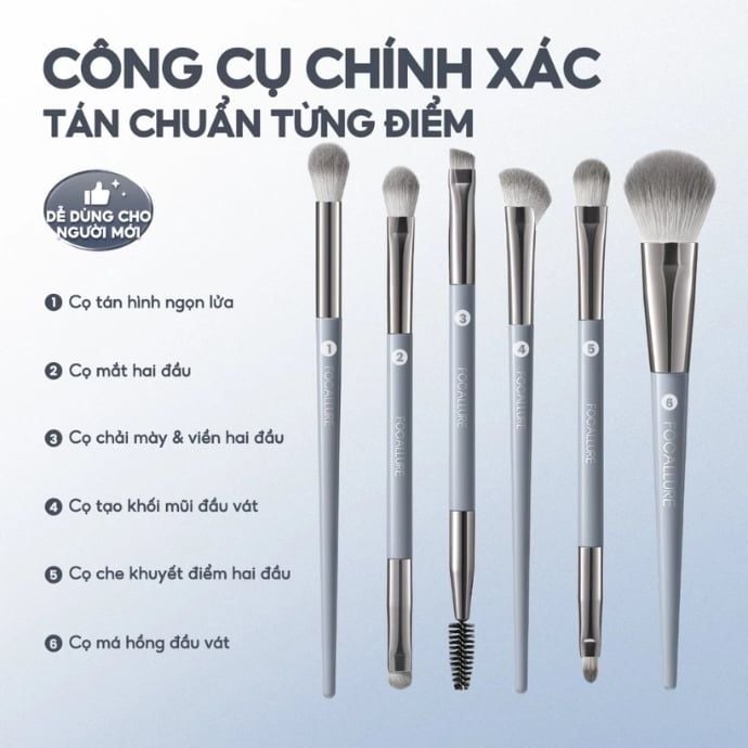 Với thiết kế nhỏ gọn nhưng vẫn đảm bảo đầy đủ các đầu cọ cơ bản, Bộ Cọ Trang Điểm 6 Cây Focallure Makeup Brushes mang đến sự tiện lợi cho việc trang điểm hằng ngày. Từng cây cọ được thiết kế để hỗ trợ các thao tác tán màu, nhấn chi tiết một cách nhẹ nhàng và dễ kiểm soát hơn.
