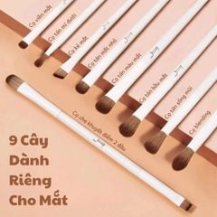 - Cọ mắt: Mỗi cây cọ mắt đều có chức năng riêng như tán màu nền, nhấn mí, blend màu, hay nhấn điểm sáng ở đầu mắt, thao tác dễ dàng và chuẩn xác.