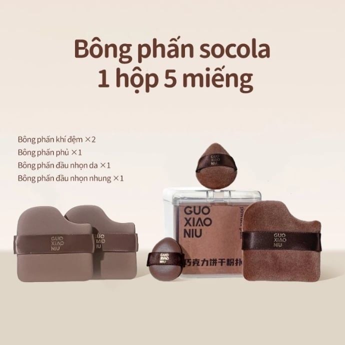 Bộ Mút Trang Điểm Guoxiaoniu Chocolate Cookie Powder Puff