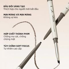 - Thiết kế hai đầu tiện lợi: Một đầu là ngòi gel siêu mảnh chỉ 1mm giúp vẽ đường kẻ tinh tế, đầu còn lại là cọ tán mềm giúp làm mịn và điều chỉnh đường eyeliner linh hoạt hơn.