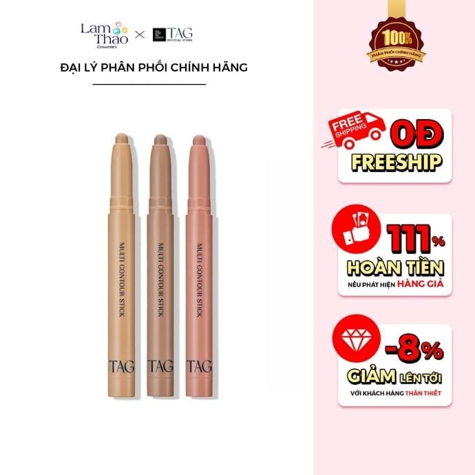 Nhỏ gọn và mang lại hiệu ứng tạo khối tự nhiên, Bút Tạo Khối Kem Dạng Thỏi Đa Năng TAG Multi Contour Stick là lựa chọn phù hợp cho cả người mới bắt đầu lẫn những ai yêu thích phong cách makeup nhẹ nhàng. Nếu bạn đang tìm một sản phẩm tạo khối tiện lợi để định hình gương mặt nhanh chóng mà vẫn mềm mại, đây chắc chắn là item đáng thử. Bạn có thể ghé Lam Thảo Cosmetics để tham khảo và chọn màu phù hợp, đội ngũ tư vấn chúng mình luôn sẵn sàng tư vấn giúp bạn tìm được tone tạo khối hài hòa nhất với làn da và phong cách trang điểm của mình.