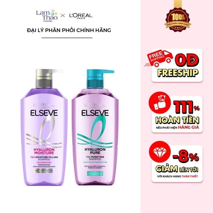 Mái tóc khỏe mạnh, mềm mượt và bồng bềnh giờ đây không còn là ước mơ xa vời. Với Dầu Gội Loreal Elseve 72H Hyaluron Shampoo, mỗi sợi tóc sẽ được chăm sóc từ gốc đến ngọn, da đầu sạch thoáng, bóng mượt và tràn đầy sức sống. Hãy để Lam Thảo Cosmetics đồng hành cùng bạn, mang sản phẩm chính hãng đến tay, giúp bạn tận hưởng trải nghiệm chăm sóc tóc nhẹ nhàng, yêu thương mỗi ngày.