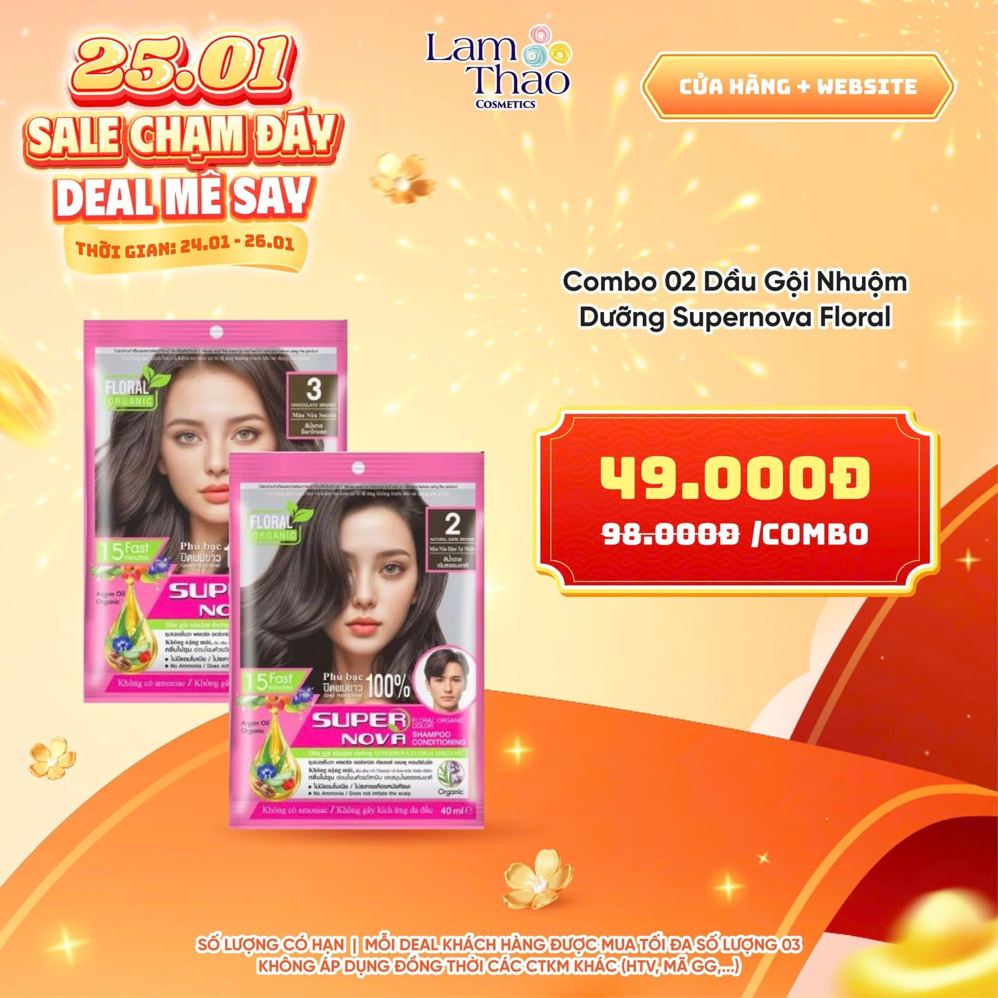Khi mái tóc được che phủ bạc tự nhiên và trở nên mềm mượt hơn từng ngày, bạn sẽ cảm nhận rõ sự tự tin và tươi trẻ quay trở lại. Dầu Gội Nhuộm Dưỡng Supernova Floral Organic không chỉ giúp bạn tiết kiệm thời gian mà còn mang đến một cảm giác chăm sóc tóc thật nhẹ nhàng ngay tại nhà. Nếu bạn đang tìm nơi mua sản phẩm nhuộm tóc chính hãng, Lam Thảo Cosmetics luôn sẵn sàng đồng hành cùng bạn. Hãy ghé Lam Thảo để chọn cho mình chai dầu gội phủ bạc phù hợp và bắt đầu hành trình chăm tóc thật thoải mái và dễ chịu mỗi ngày nhé!