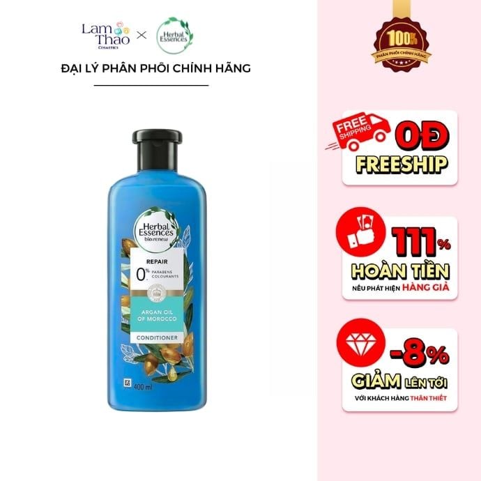 Sau tất cả, một mái tóc mềm mại và khỏe khoắn luôn là điều mà bất kỳ cô gái nào cũng mong muốn mỗi ngày. Với Dầu Xả Phục Hồi Tư Tổn Herbal Essences Argan Oil Of Morocco Conditioner, hành trình chăm sóc tóc của bạn trở nên nhẹ nhàng và thư thái hơn bao giờ hết - vừa làm sạch, vừa phục hồi, vừa nâng niu mái tóc theo cách dịu dàng nhất. Nếu bạn đang tìm nơi mua hàng chính hãng, giá tốt, Lam Thảo Cosmetics luôn sẵn sàng đồng hành cùng bạn. Hãy để Lam Thảo giúp bạn chọn đúng sản phẩm, để mỗi lần chạm vào mái tóc đều là một khoảnh khắc thật yêu thương. 💛