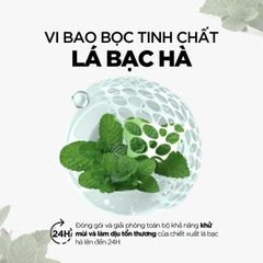 - Tinh chất lá bạc hà mang lại cảm giác sạch thoáng, tươi mát suốt 12 giờ.