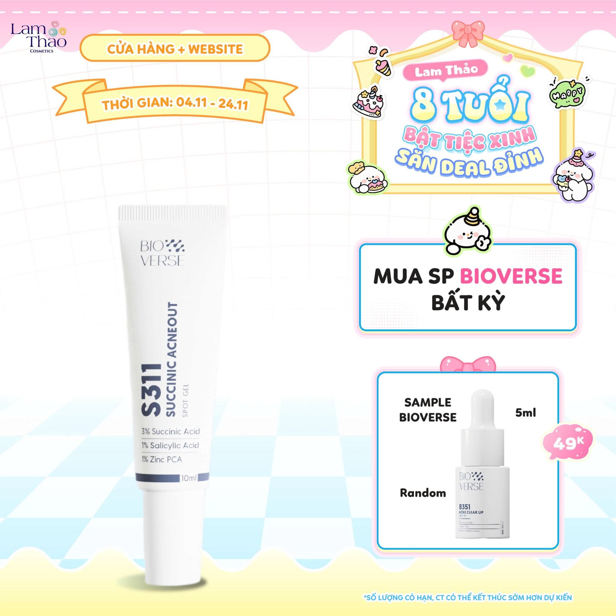 [DEAL SỐC 4.11 - 24.11 TẶNG SAMPLE BIOVERSE 5ML] Gel Chấm Mụn Hỗ Trợ Giảm Khuẩn Và Se Còi Mụn Bioverse S311 Succinic Acneout Spot Gel