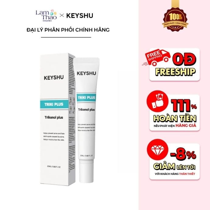 Hãy để Serum Giảm Mụn, Làm Dịu Da Keyshu Triki Plus trở thành người bạn đồng hành cùng làn da bạn mỗi ngày, giúp giảm mụn, làm dịu da và mang lại cảm giác tự tin với làn da khỏe mạnh. Tại Lam Thảo Cosmetics, chúng mình luôn sẵn sàng mang đến sản phẩm chính hãng, an toàn và phù hợp với nhu cầu của từng làn da. Đừng chần chừ - trải nghiệm Triki Plus ngay hôm nay để cảm nhận làn da tươi sáng, mềm mại và sạch mụn hơn từng ngày!