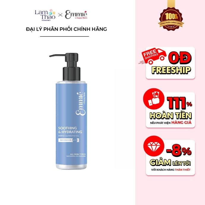Một làn da khỏe đẹp luôn bắt đầu từ bước làm sạch đúng cách. Gel Rửa Mặt Dịu Nhẹ Cấp Ẩm Emmie Soothing & Hydrating Derma Cleansing Gel mang đến trải nghiệm rửa mặt dịu nhẹ, giúp loại bỏ bụi bẩn và dầu thừa mà vẫn giữ lại độ ẩm cần thiết cho da, đặc biệt phù hợp với những làn da nhạy cảm hoặc cần sự chăm sóc nhẹ nhàng mỗi ngày. Bạn có thể tìm mua sản phẩm tại Lam Thảo Cosmetics - Thiên đường luôn ưu tiên lựa chọn những sản phẩm chăm sóc da chất lượng, nguồn gốc rõ ràng và mức giá dễ tiếp cận. Ghé Lam Thảo để lựa chọn cho mình những sản phẩm phù hợp và chăm sóc làn da theo cách an tâm nhất nhé.