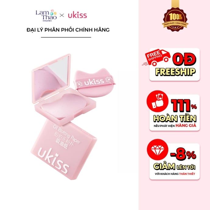 Giấy thấm dầu Ukiss Powder Puff Oil Absorbing Paper được làm từ sợi tự nhiên lành tính kết hợp cùng công nghệ tinh chế hiện đại, mang lại khả năng thấm hút dầu nhanh chóng mà vẫn nhẹ dịu với làn da.
