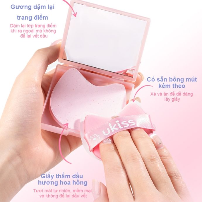 Hộp Giấy Thấm Dầu Hương Hoa Hồng Kèm Bông Phấn Ukiss Powder Puff Oil Absorbing Paper