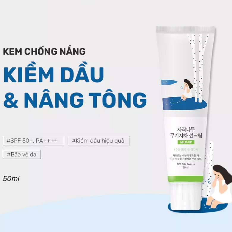 Kem Chống Nắng Nâng Tông Tự Nhiên Và Kiềm Dầu Round Lab Birch Juice Mild-Up Sunscreen SPF50+ PA++++