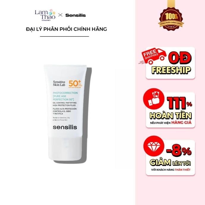 Với khả năng bảo vệ da trước tia UVA, UVB và ánh sáng xanh cùng công thức hỗ trợ kiểm soát bã nhờn, Kem Chống Nắng Sensilis Photocorrection [Pure Age Perfection 50] là lựa chọn phù hợp cho làn da dầu mụn và nhạy cảm cần một lớp chống nắng nhẹ dịu mỗi ngày. Kết cấu mỏng nhẹ, thoáng da nhưng vẫn đảm bảo hiệu quả bảo vệ giúp sản phẩm dễ dàng trở thành bước chăm sóc quen thuộc trong chu trình skincare buổi sáng. Nếu bạn đang tìm kiếm kem chống nắng Sensilis chính hãng, bạn có thể ghé Lam Thảo Cosmetics để tham khảo và lựa chọn sản phẩm phù hợp. Tại Lam Thảo, các sản phẩm đều được chọn lọc kỹ lưỡng với nguồn gốc rõ ràng, giúp bạn yên tâm hơn khi chăm sóc làn da mỗi ngày.