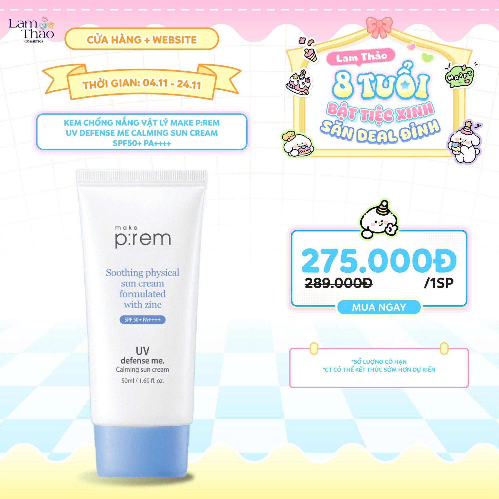 Trong dòng sản phẩm chủ lực của mình, Make P:rem UV Defense Me Calming Sun Cream SPF50+ PA++++ nhanh chóng trở thành best-seller nhờ khả năng vừa chống nắng mạnh mẽ, vừa làm dịu làn da “khó chiều”.