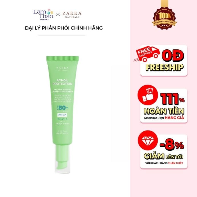 Với khả năng bảo vệ da toàn diện nhưng vẫn giữ được sự khô thoáng và dễ chịu, Kem Chống Nắng Zakka Naturals Acnoil Protection Airy Velvet Sunscreen Oil Control SPF50+ PA++++ & PM2.5 Defense sẽ là người bạn đồng hành lý tưởng cho làn da mỗi ngày. Không chỉ giúp chống nắng hiệu quả, sản phẩm còn chăm sóc làn da dầu mụn một cách dịu nhẹ, để bạn luôn tự tin với làn da tươi tắn hơn từng ngày. Nếu bạn đang tìm một nơi uy tín để lựa chọn sản phẩm chính hãng, hãy ghé Lam Thảo Cosmetics - nơi luôn đồng hành cùng bạn trong hành trình chăm sóc làn da khỏe đẹp, an toàn và nhẹ nhàng mỗi ngày 💛