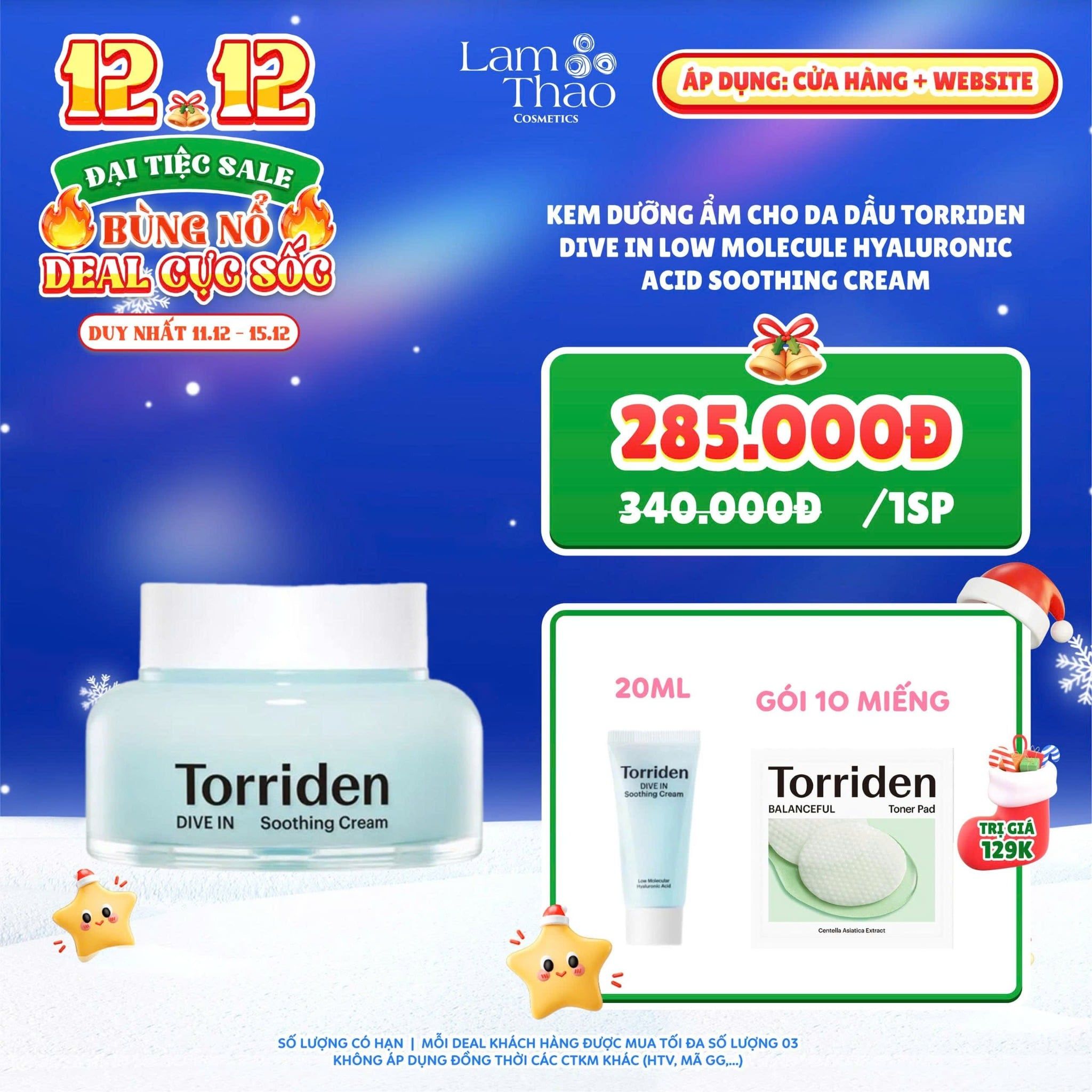 [DEAL SỐC 11.12 - 15.12 TẶNG KEM DƯỠNG 20ML + GÓI TONER PAD 10 MIẾNG] Kem Dưỡng Ẩm Cho Da Dầu Torriden Dive In Low Molecule Hyaluronic Acid Soothing Cream