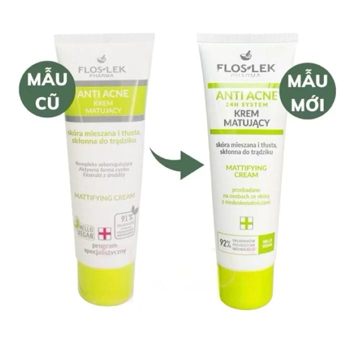 Da dầu mụn luôn cần sự cân bằng giữa dưỡng ẩm và kiểm soát bã nhờn. Kem Dưỡng Ẩm Kiềm Dầu Floslek Anti Acne 24h System Mattifying Cream Mixed Oily And Acne Prone Skin mang đến giải pháp chăm sóc da thông minh: cấp ẩm suốt 24 giờ, giảm bóng nhờn, hỗ trợ làm dịu da và cải thiện tình trạng mụn. Đây là lựa chọn tối ưu cho Gen Z muốn sở hữu làn da khỏe, thoáng nhẹ và tự tin mỗi ngày.