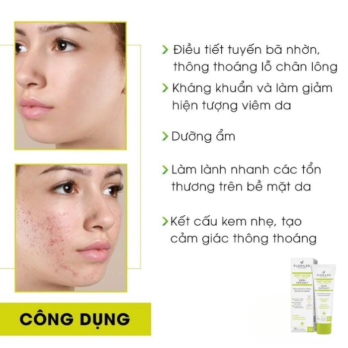 Kem Dưỡng Ẩm Kiềm Dầu Floslek Anti Acne 24h System Mattifying Cream Mixed Oily And Acne Prone Skin