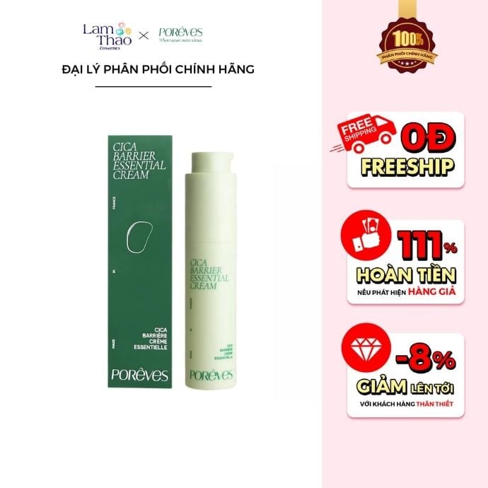 Giữa nhịp sống bận rộn, làn da cũng cần được yêu thương và vỗ về như cách bạn chăm sóc tâm hồn mình. Kem Dưỡng Ẩm Phục Hồi Và Ngừa Kích Ứng Cho Da Nhạy Cảm Poreves Cica Barrier Essential Cream không chỉ là một hũ kem dưỡng, mà là người bạn đồng hành giúp da luôn mềm mịn, khỏe mạnh và rạng rỡ từng ngày. Hãy để Lam Thảo Cosmetics đồng hành cùng bạn trên hành trình chăm da mỗi ngày. Tại Lam Thảo, bạn có thể tìm thấy kem dưỡng Porêves chính hãng, cùng muôn vàn sản phẩm làm đẹp được chọn lọc với tình yêu và sự tận tâm dành riêng cho làn da Việt.
