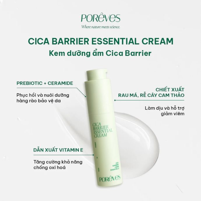 Kem Dưỡng Ẩm Phục Hồi Và Ngừa Kích Ứng Cho Da Nhạy Cảm Poreves Cica Barrier Essential Cream