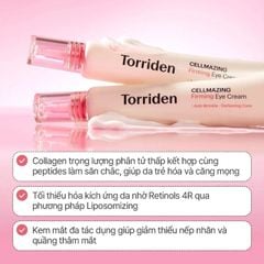 Trong hành trình đó, Torriden đã cho ra đời nhiều dòng sản phẩm chuyên biệt. Nổi bật trong số đó, Kem Dưỡng Mắt Torriden Cellmazing Firming Eye Cream được xem như lựa chọn lý tưởng để làm mờ nếp nhăn, giúp đôi mắt thêm trẻ trung và sáng khỏe.