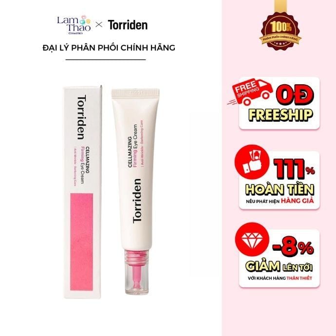 Đôi mắt tươi trẻ, rạng rỡ sẽ luôn là điểm nhấn giúp gương mặt bạn bừng sáng và cuốn hút hơn. Với Kem Dưỡng Mắt Torriden Cellmazing Firming Eye Cream, việc chăm sóc và ngăn ngừa lão hóa vùng da nhạy cảm này trở nên đơn giản và hiệu quả hơn bao giờ hết. Hãy trải nghiệm ngay sản phẩm chính hãng tại Lam Thảo Cosmetics để tự tin gìn giữ nét thanh xuân mỗi ngày!