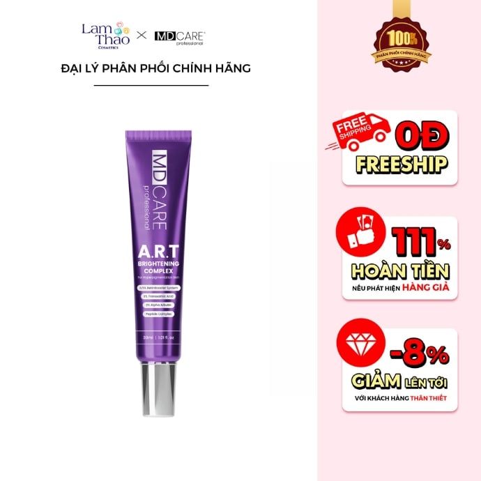 Nếu bạn đang tìm kiếm một giải pháp chăm sóc da vừa làm sáng, cải thiện sắc tố vừa hỗ trợ trẻ hoá và phục hồi da lâu dài, Kem Dưỡng MD Care A.R.T Brightening Complex sẽ là lựa chọn đáng cân nhắc cho chu trình dưỡng da mỗi ngày của bạn. Tại Lam Thảo Cosmetics, sản phẩm luôn được chọn lọc kỹ lưỡng, đảm bảo chính hãng và sẵn sàng đồng hành cùng bạn trên hành trình chăm sóc làn da khoẻ đẹp, rạng rỡ hơn từng ngày. Ghé Lam Thảo ngay hôm nay để trải nghiệm và chọn cho mình sản phẩm phù hợp nhất nhé!