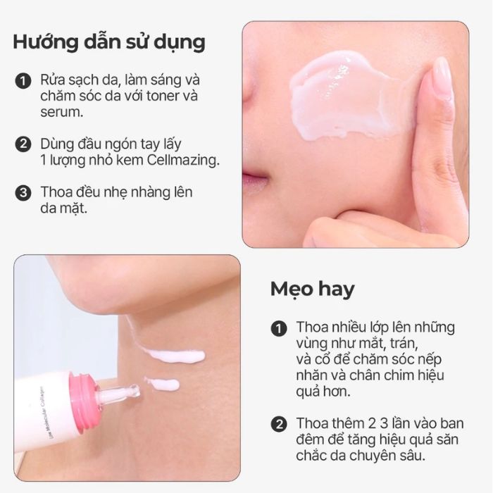 Lấy một lượng kem vừa đủ, thoa đều lên mặt và cổ.
