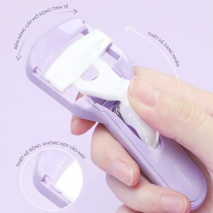 Lông mi cụp, ngắn hoặc dễ bị kẹp vào mí luôn khiến việc bấm mi trở nên khó khăn, thậm chí gây đau và làm gãy rụng lông mi. Nhiều loại kẹp mi kim loại lực mạnh nhưng lại khó kiểm soát, đặc biệt với những dáng mắt khó như mí lót, mắt sưng. Hiểu được nỗi lo đó, Kẹp Mi Nhựa Tím Nhạt Guoxiaoniu Eyelash Curler được thiết kế với khung rộng, lực bấm nhẹ giúp nâng mi cong tự nhiên mà không kẹp vào da. Nhờ vậy, bạn có thể dễ dàng tạo hàng mi cong vút, rõ từng sợi và giữ nếp lâu dài chỉ với vài thao tác đơn giản.
