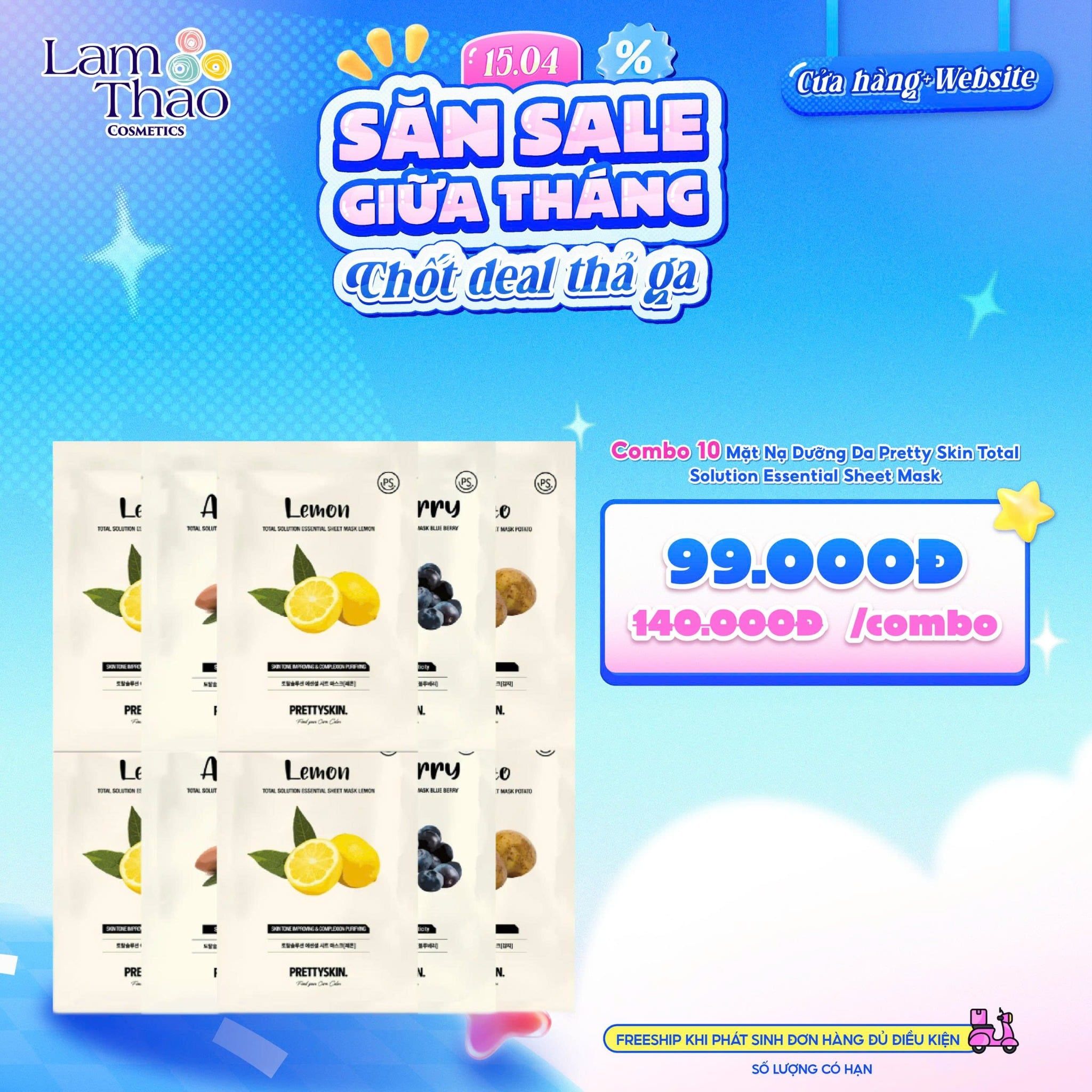 [COMBO 10 NẠ PRETTY SKIN GIÁ SỐC] Mặt Nạ Dưỡng Da Pretty Skin Total Solution Essential Sheet Mask