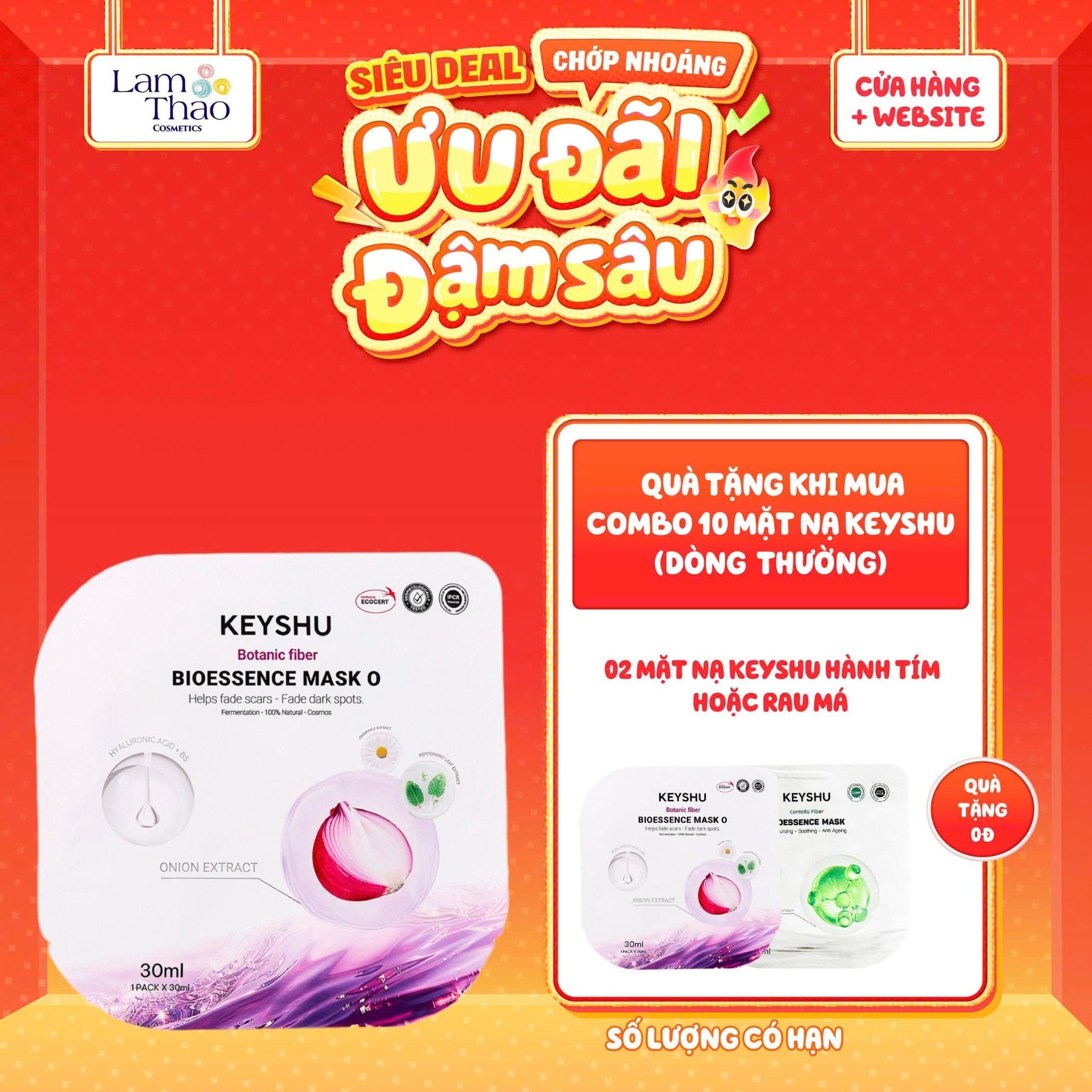 Cấp ẩm sâu, phục hồi và hỗ trợ làm mờ thâm sẹo – tất cả chỉ trong một bước với Mặt Nạ Hành Tím Cấp Ẩm, Hỗ Trợ Mờ Thâm Sẹo Keyshu Botanic Fiber Bioessence Mask O. Trải nghiệm ngay sản phẩm tại Lam Thảo Cosmetics để làn da của bạn được nâng niu đúng cách.