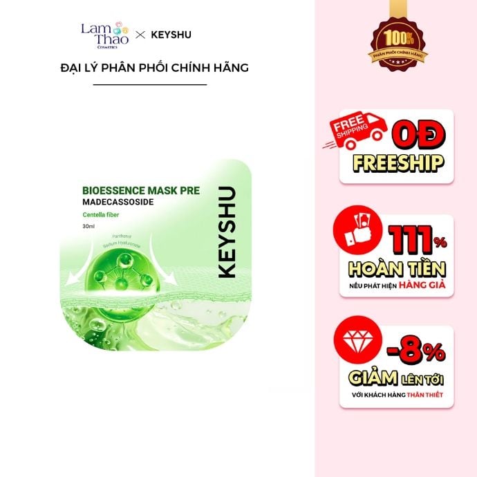 Keyshu là một thương hiệu dược mỹ phẩm thuần Việt với sứ mệnh mang đến những giải pháp chăm sóc da an toàn, lành tính nhưng vẫn hiệu quả. Thương hiệu khéo léo kết hợp tinh túy từ thiên nhiên cùng công nghệ sinh học hiện đại, được nghiên cứu bài bản để mỗi sản phẩm đều thân thiện ngay cả với làn da nhạy cảm. Trên hành trình đó, Mặt Nạ Rau Má Làm Dịu Da Keyshu Bioessence Mask Pre ra đời như một bước chăm sóc nhẹ nhàng nhưng cần thiết, giúp làn da được xoa dịu và dần lấy lại vẻ ẩm mượt, tươi tắn tự nhiên mỗi ngày.