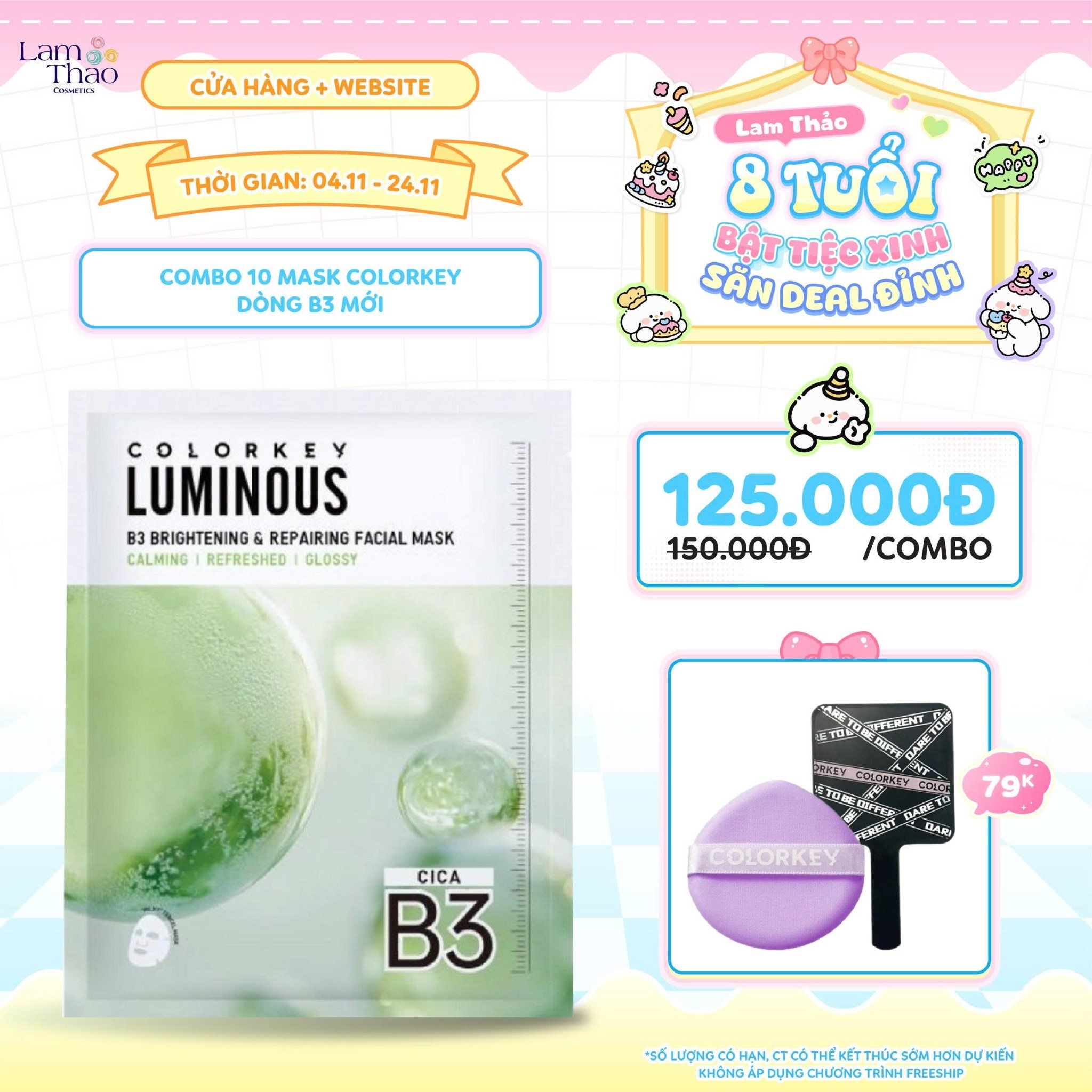 [DEAL SỐC 4.11 - 24.11 COMBO 10 MASK TẶNG BÔNG MÚT NỀN + GƯƠNG COLORKEY] Mặt Nạ Phục Hồi Và Sáng Da B3 Colorkey Luminous B3 Brightening & Repairing Facial Mask - Cica