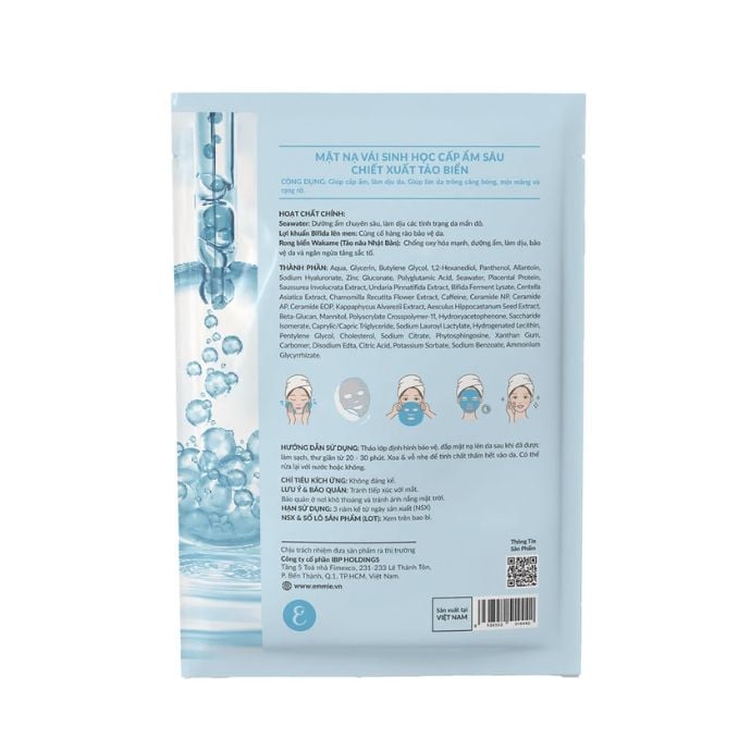 • Nước biển sâu (Seawater): Được khai thác từ tầng nước sâu giàu khoáng chất, giúp bổ sung độ ẩm và cung cấp các vi khoáng cần thiết cho da