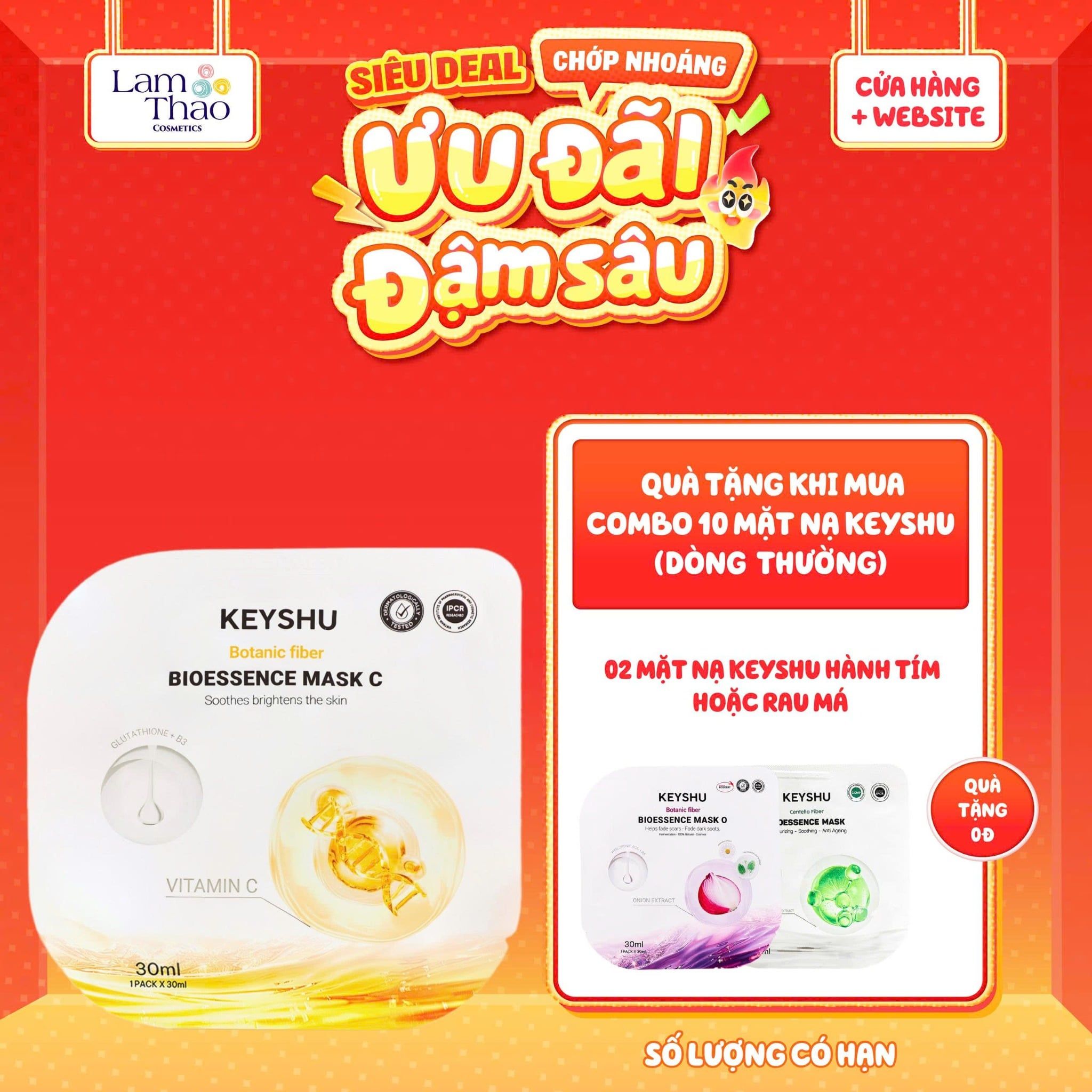 Muốn làn da sáng mịn, ẩm mượt và đều màu? Mặt Nạ Vitamin C Cấp Ẩm Keyshu Botanic Fiber Bioessence Mask C sẽ là “trợ thủ” của bạn. Sản phẩm hiện có tại Lam Thảo Cosmetics, đảm bảo chính hãng và giá tốt.