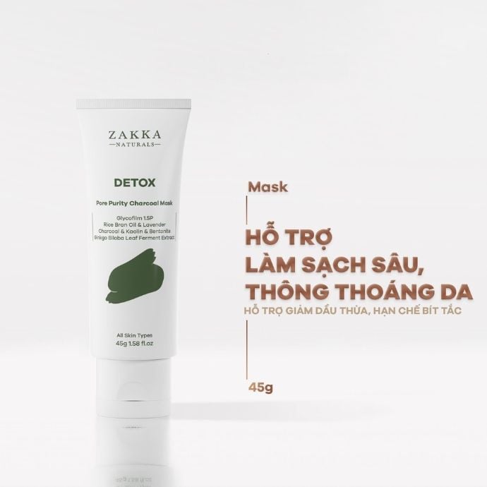Da dễ bí tắc, lỗ chân lông tích tụ dầu thừa sau một ngày dài khiến mụn ẩn, mụn đầu đen ngày càng xuất hiện nhiều hơn. Nếu chỉ làm sạch thông thường, da vẫn khó được thanh lọc sâu bên trong lỗ chân lông. Chính vì vậy, Mặt Nạ Zakka Naturals Detox Pore Purity Charcoal Mask ra đời như một bước làm sạch chuyên sâu, giúp thanh lọc da và mang lại cảm giác thông thoáng, dễ chịu sau mỗi lần sử dụng.